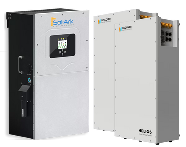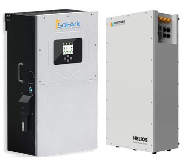 Sol-Ark 15K-2P Hybrid Inverter + 2 x Discover Helios Battery The Sol-Ark 15K-2P Hybrid Inverter paired with two Discover Helios LiFePO4 batterie...