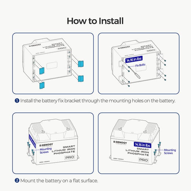 Renogy Mounting Brackets for 12V 100Ah Pro LiFePO4 Batteries (Set of 4)